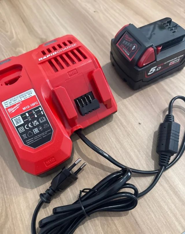Detalles del productoVendo cargador Milwaukee M12-18FC y dos baterías de iones de litio de 5.0 Ah. El cargador está en perfecto estado y las baterías se ven en muy buen estado.