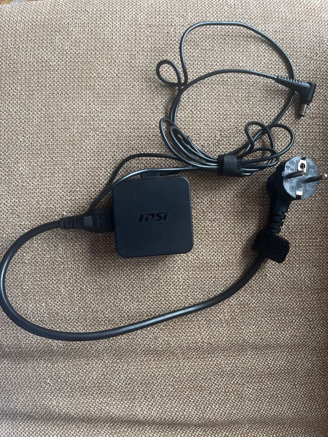 Cargador de corriente MSI. - Cable de alimentación con enchufe. - Adaptador de corriente compacto.