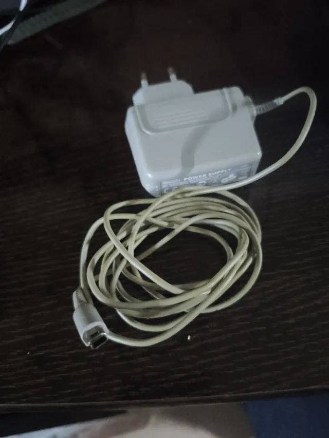 Adaptador de corriente para consolas Nintendo. - Color gris. - Cable enrollado.