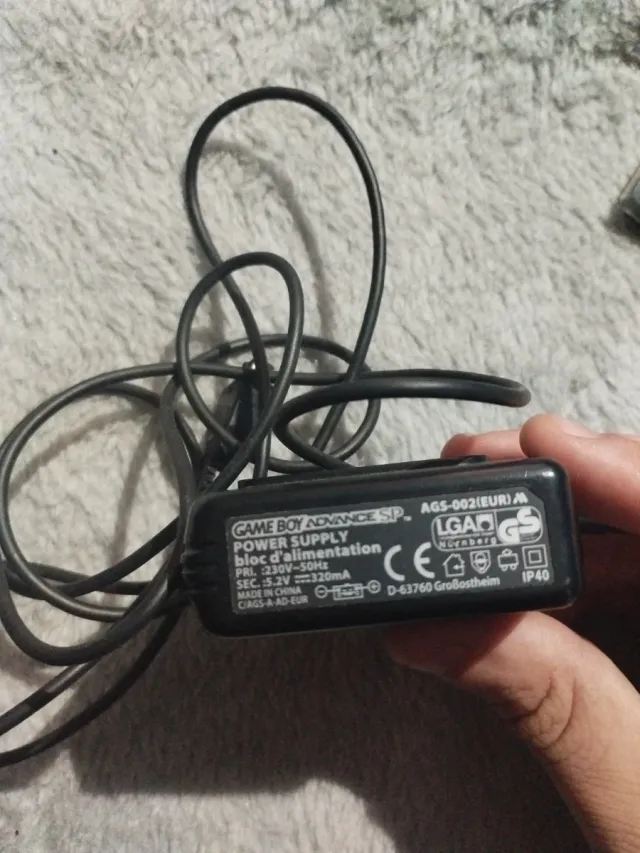 Adaptador de corriente para Game Boy Advance SP. - Modelo: AGS-002(EUR) - Entrada: 230V - 50Hz - Salida: 5.2V - 320mA - Fabricado en China