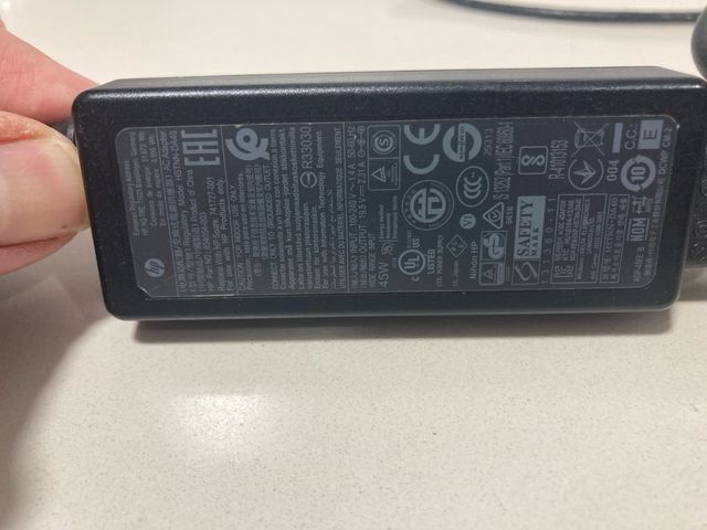 Cargador portátil HP modelo HSTNN-DA40. - Potencia de salida: 19.5V 2.31A. - Voltaje de entrada: 100-240V ~ 1.4A 50-60 Hz. - Potencia: 45W. 20250921-1
