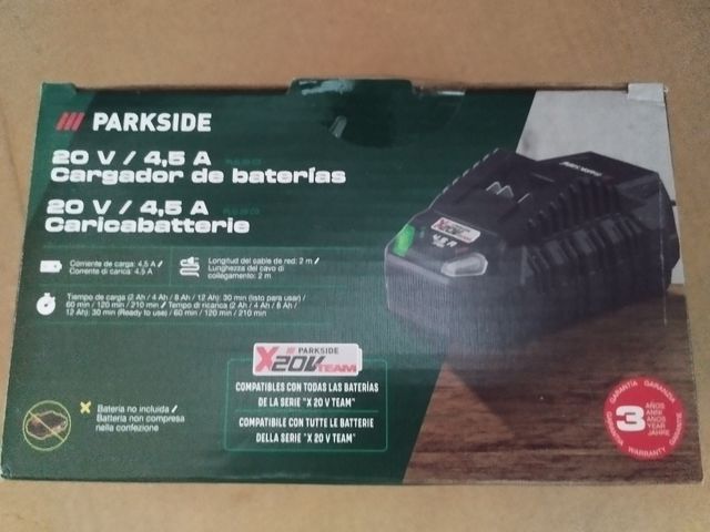 Cargador rápido de baterías Parkside NUEVO SIN ABRIR Compatible con baterías de la serie "X 20V Team". Envío rápido Más productos interesantes en mi perfil