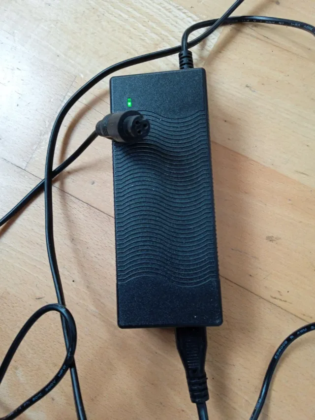 Cargador para patinete eléctrico hoverboard Zeeclo. Dispone de un indicador LED de carga. - Conector de 4 pines. - Color negro.