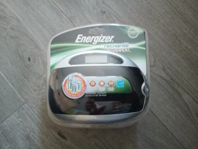 Cargador de pilas Energizer universal. - Carga pilas AAA, AA, C, D y 9V. - Indicador de carga. - Diseño compacto.