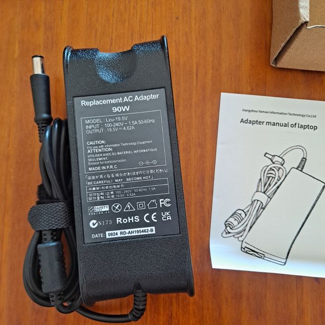 Adaptador de corriente alterna de reemplazo para portátil. - Modelo: LZU-19.5W - Entrada: 100-240V 50-60Hz - Salida: 19.5V 4.62A - Nuevo, en su embalaje original.