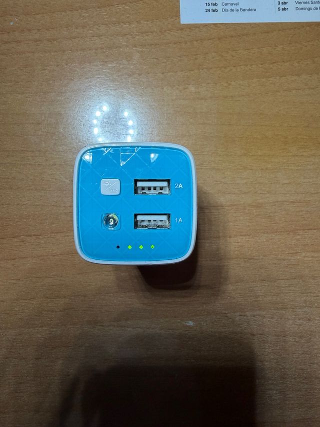 Detalles del productoCargador portátil con dos puertos USB para cargar tus dispositivos.