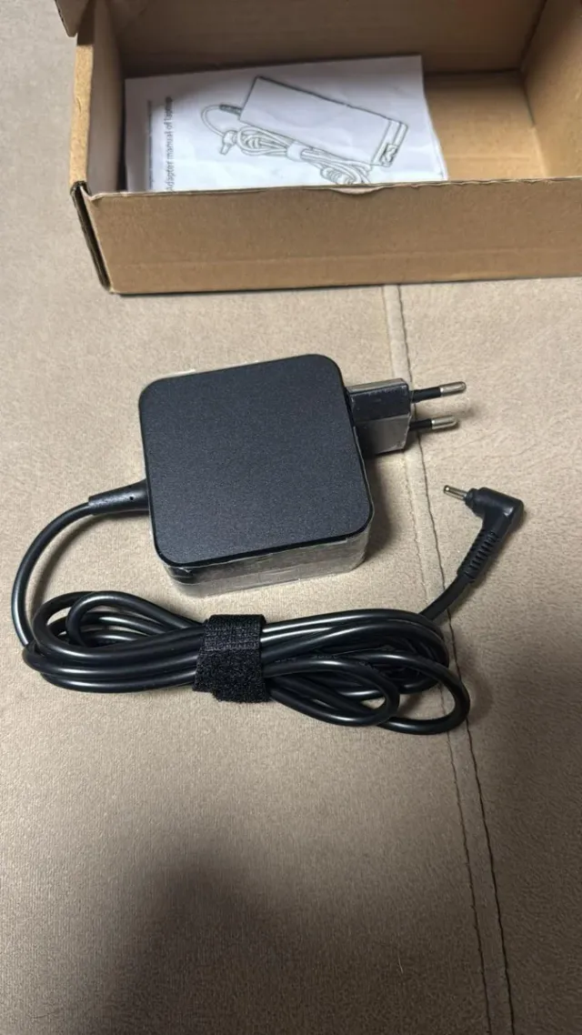 Adaptador de corriente para portátil en color negro. Tipo asus Punta 3mm - Diseño compacto y ligero. - Cable de alimentación incluido. - Enchufe europeo.