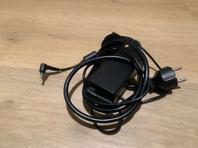 Cargador de portátil en color negro con una potencia de 65W. - Cable de alimentación incluido. - Conector de salida angular.
