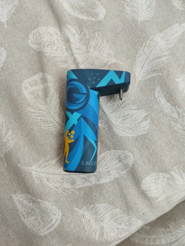 Cargador para mando de PS5 con diseño exclusivo. - Diseño inspirado en Grefg. - Colores azul y amarillo. - Detalle de estrellas y figura humana.