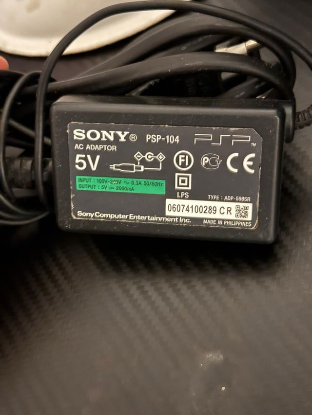 Adaptador de corriente oficial Sony para PSP. - Modelo: PSP-104 - Voltaje de salida: 5V - Fabricado en Filipinas
