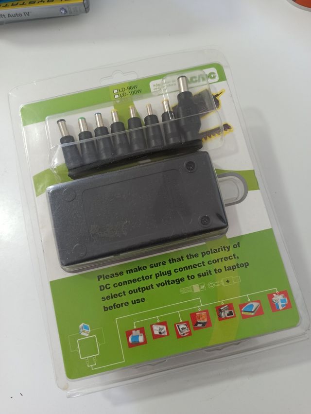 Detalles del productocargador universal para portátiles impresoras cámaras pantallas y similares por favor mirad bien las informaciones de producto en las fotos tiene un selector por botón de voltaje.