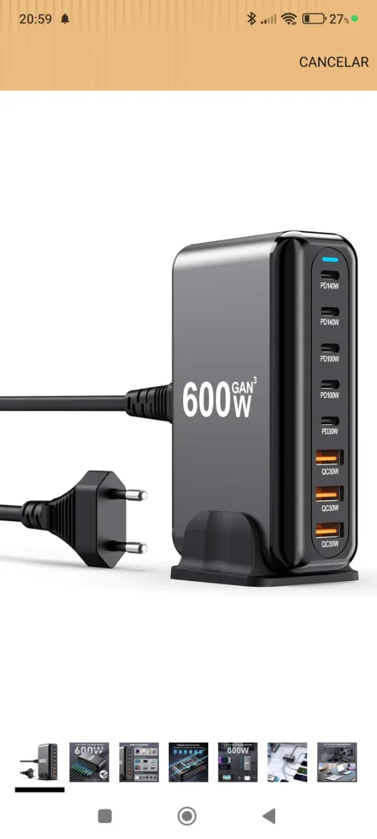 Detalles del productoCargador USB de alta potencia con tecnología GAN.