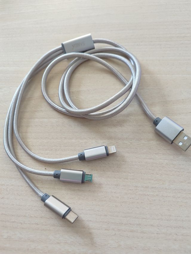 Cargador USB de multiples salidas. IPhone, typo C y micro Usb.