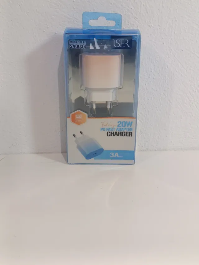 Adaptador de carga rápida USER de 20W con tecnología PD. - Modelo SA0038. - Salida de 3A. - Diseño compacto. -Puerto micro usb