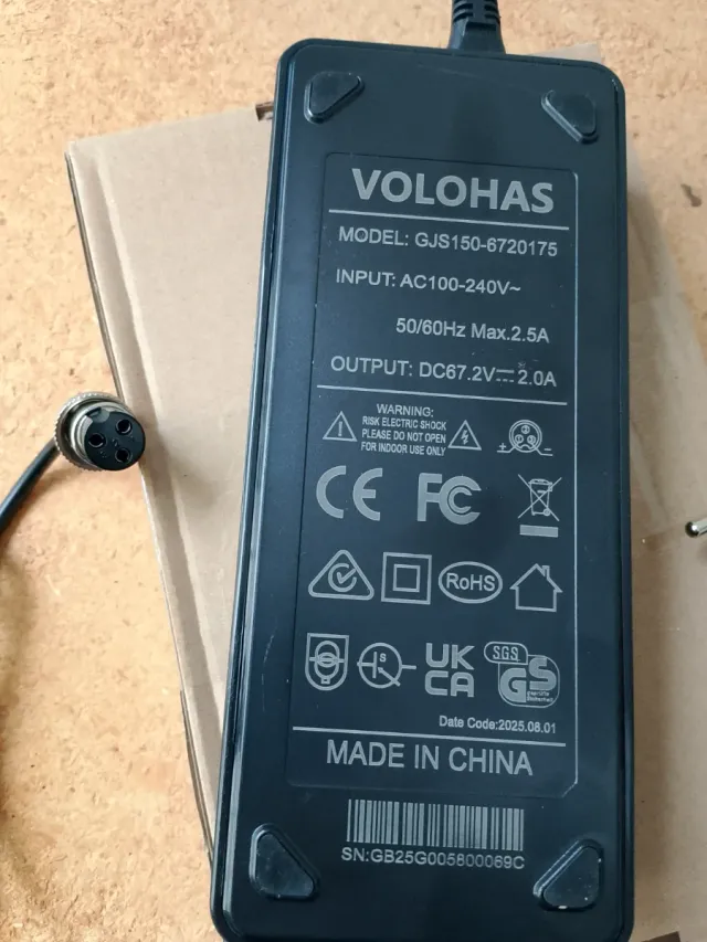 Detalles del productoCargador de corriente VOLOHAS para patinetes eléctricos.