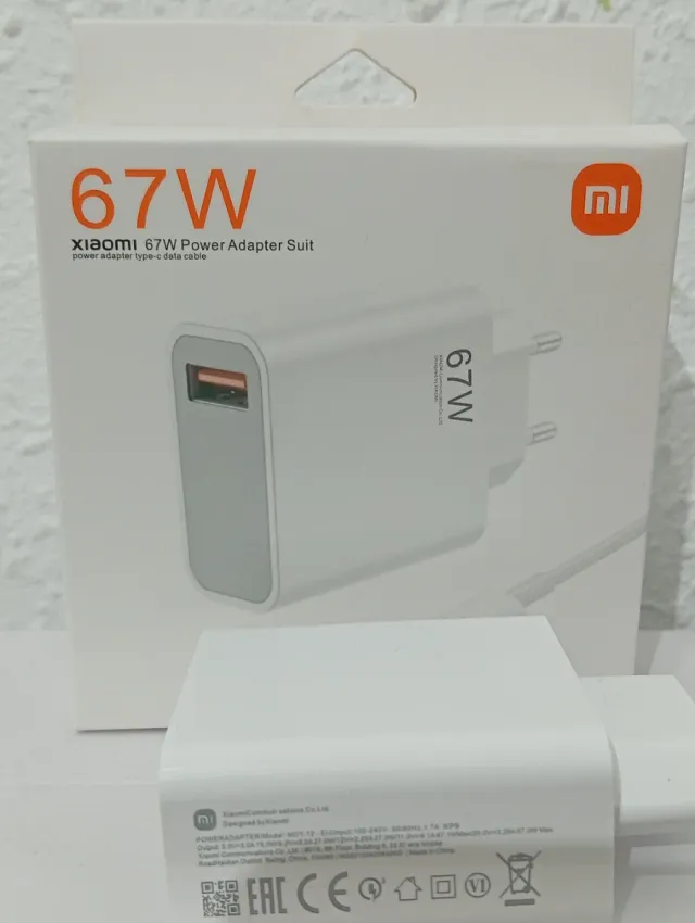 Detalles del productoNuevo Cargador de pared Xiaomi de 67W con tecnología de carga ultra rápida. Incluye cable de datos USB-C.