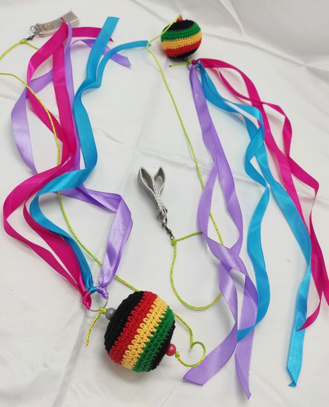 Detalles del productoCariocas hechas a mano con mucho amor. Geniales para hacer malabares. La cola mide 50cm. Precio por pareja. Son nuevas a estrenar.