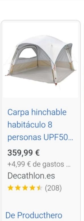 Detalles del productoCarpa hinchable habitáculo para 8 personas Quechua. Está en muy buen estado.