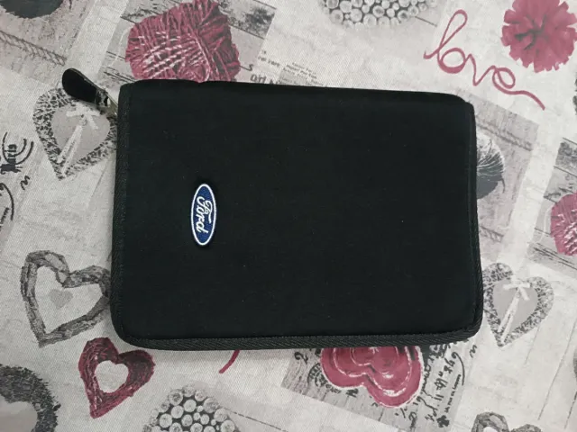 Carpeta negra con el logo de Ford. - Cierre con cremallera. - Diseño elegante y funcional.