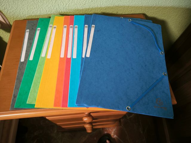 Detalles del productoLote de nueve carpetas de la marca Exacompta, modelo 55510AMZE.  Son de colores variados y parecen estar en buen estado.