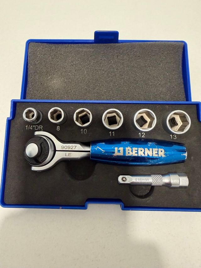 Detalles del productoSet de carraca orientable Berner de 1/4 con varios vasos.