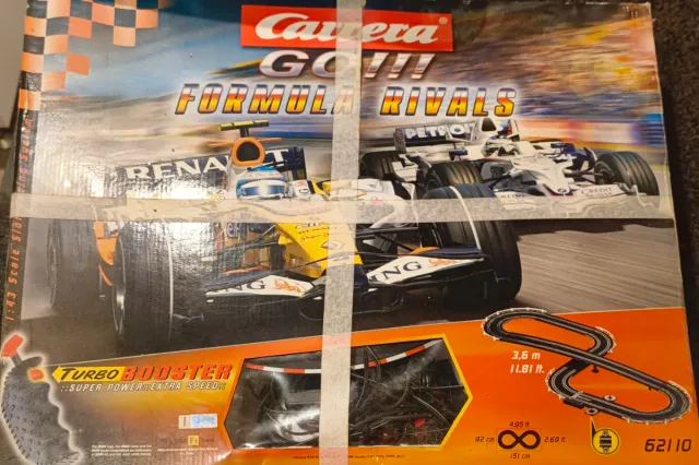 Circuito de Scalextric Carrera GO!!! Formula Rivals. - Incluye dos coches de fórmula 1. - Pista de 3,6 metros. - Turbo Booster para mayor velocidad.
