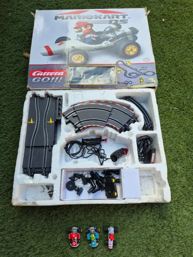 Detalles del productoCircuito de Scalextric Carrera GO!!! con temática de Mario Kart DS. Incluye todo lo necesario para empezar a jugar.