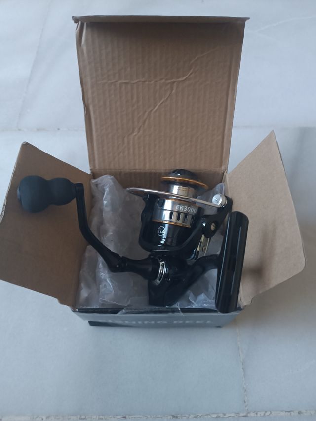 Carrete de pesca en color negro, modelo EK3000. Diseñado para la pesca. - Mango giratorio. - Bobina metálica.