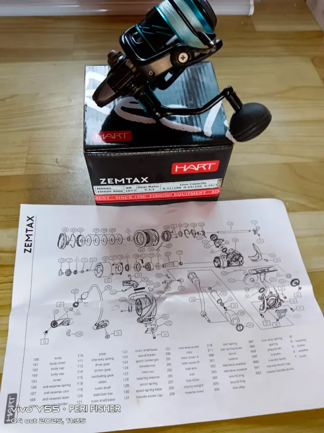 Carrete de pesca HART ZEMTAX, modelo 15HOD 4000. - Color: Negro y azul. - Incluye manual de despiece.