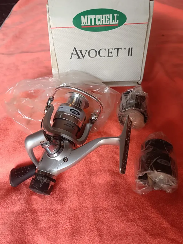 Carrete de pesca Mitchell Avocet II, ideal para la pesca. - Color plateado y negro. - Incluye bobinas adicionales.