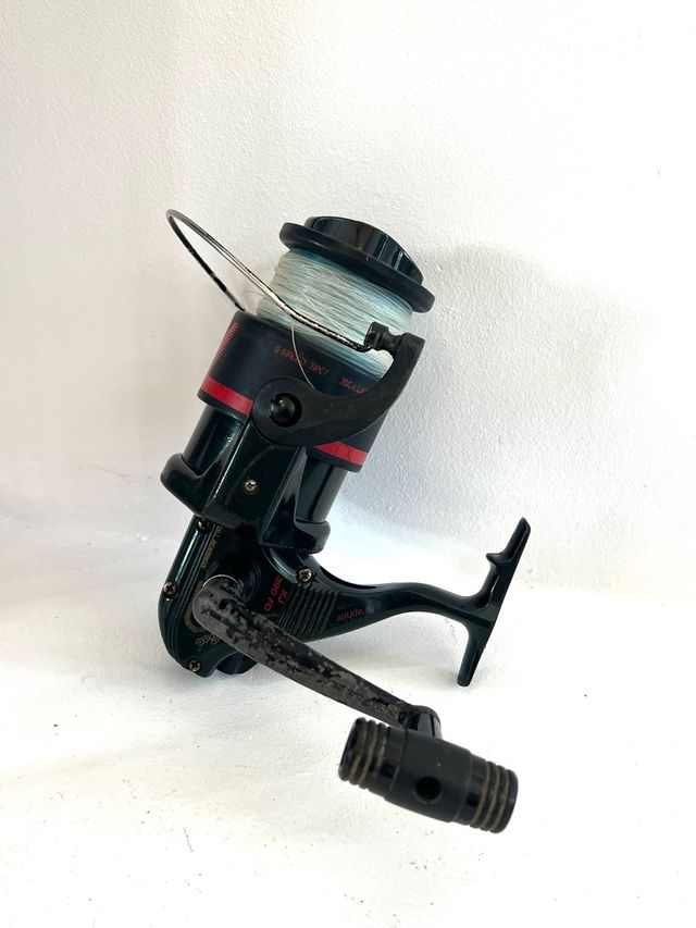 Carrete de pesca Sun God en color verde oscuro y detalles en rojo. mas en mi perfil - Mango extraíble. - Bobina con hilo de pesca.