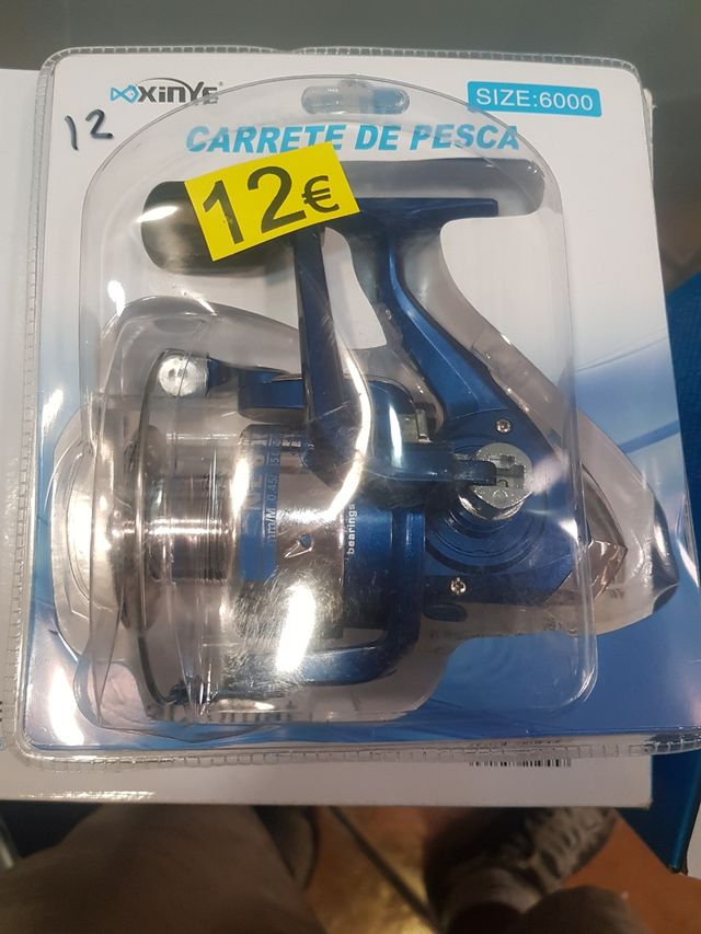 Carrete de pesca de la marca XINYE, modelo 6000. Color azul metálico. - Tamaño: 6000 - Color: Azul - Incluye etiqueta de precio de 12€.