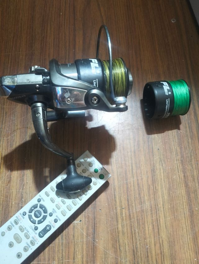 Detalles del productoCarrete de pesca FLIII Line Carp en buen estado. Incluye dos carretes de hilo de repuesto.