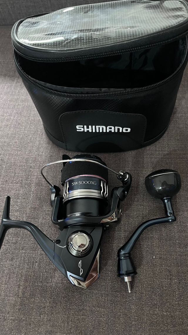 Carrete de pesca Shimano Stradic SW5000XG en color negro. - Incluye funda de transporte. - Mango desmontable. - No envío solo entrega en mano