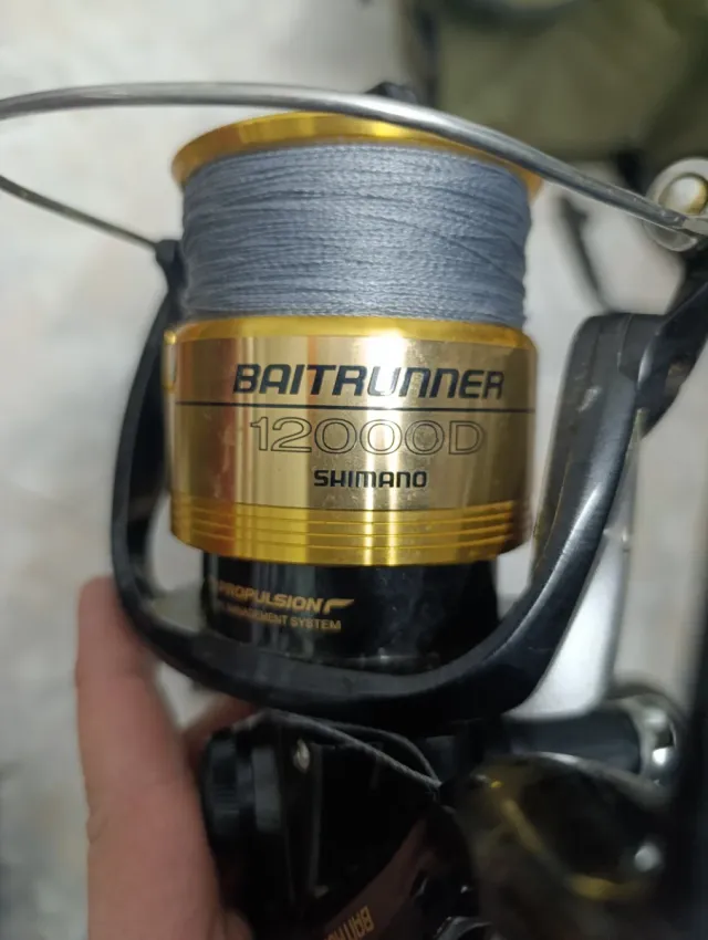 Carrete de pesca Shimano Baitrunner 12000D con hilo gris. - Modelo Baitrunner 12000D. - Marca Shimano. - Incluye sistema Propulsion Line Management.