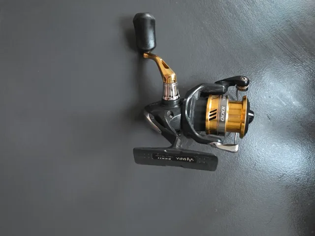 Detalles del productoCarrete de pesca Shimano Sahara 1000 en color negro y dorado.
