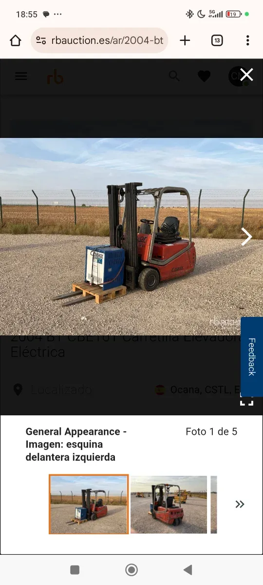 Carretilla elevadora eléctrica en buen estado. - Modelo: 2004 BT UDE TUT - Tipo: Carretilla Elevadora Eléctrica - Ubicación: Ocaña, CSTL, E