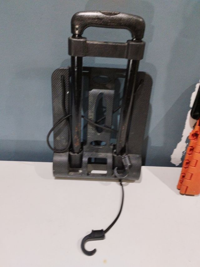Detalles del productoCarretilla plegable de tamaño reducido, ideal para transportar objetos de forma cómoda.