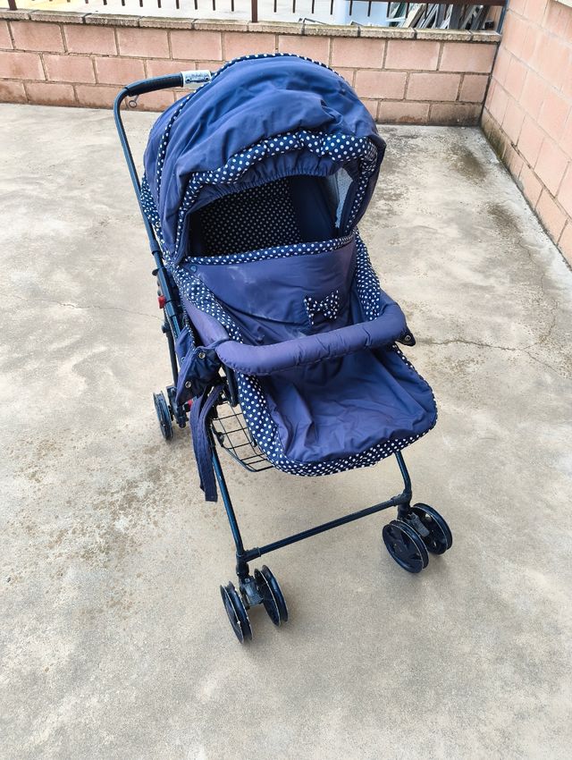 Carrito bebé azul con lunares. Leer descripción