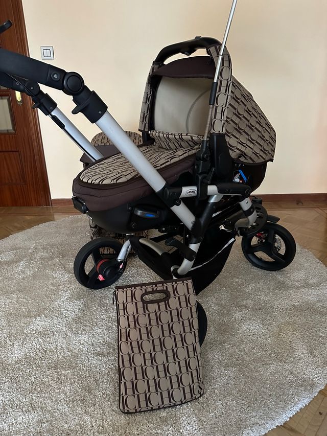 Detalles del productoElegante carrito de bebé con un distintivo estampado de iniciales.