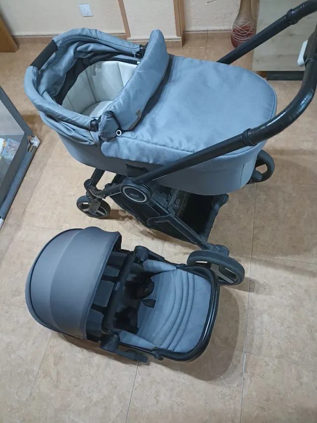 Carrito de bebé Chicco Best Friend, un sistema 2 en 1 versátil y práctico. - Incluye capazo y silla. - Diseño moderno y funcional. - Color gris.
