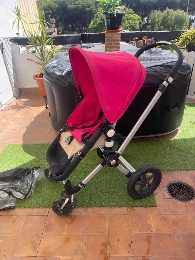 tiene dos juegos de capotas fucsia y rosa bebé , paraguas de sol, chubasquero y mas cositas puedes verlo sin problema... lo vendo con urgencia por que estoy de mudanza...