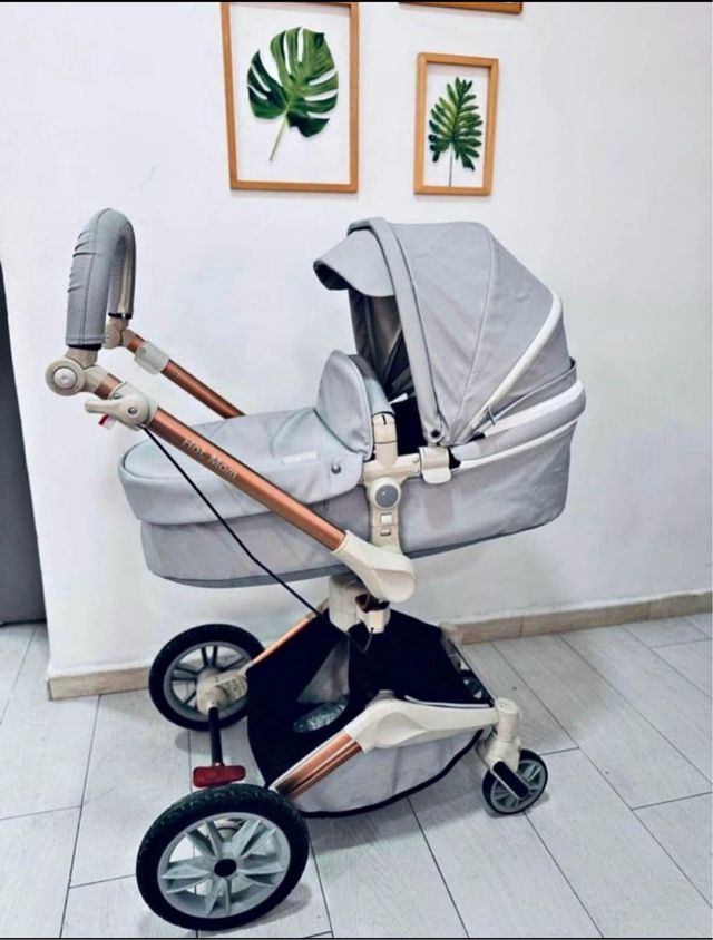 Detalles del productoEl cochecito giratorio de 360 grados de la marca Hot Mom es de alta gama, elegante y funcional para la mamá y el bebé en movimiento.