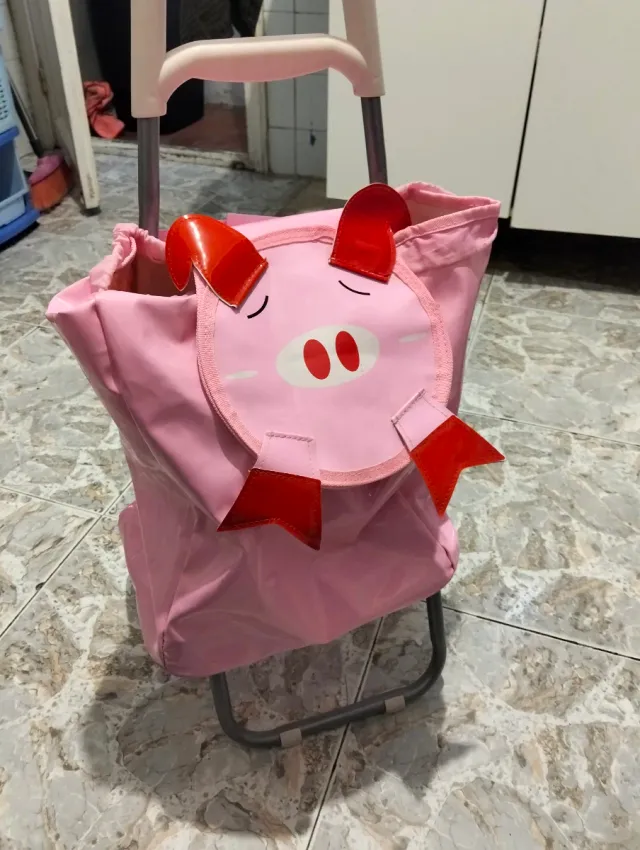 Detalles del productoCarrito de compras con diseño de cerdito, ideal para los más pequeños.