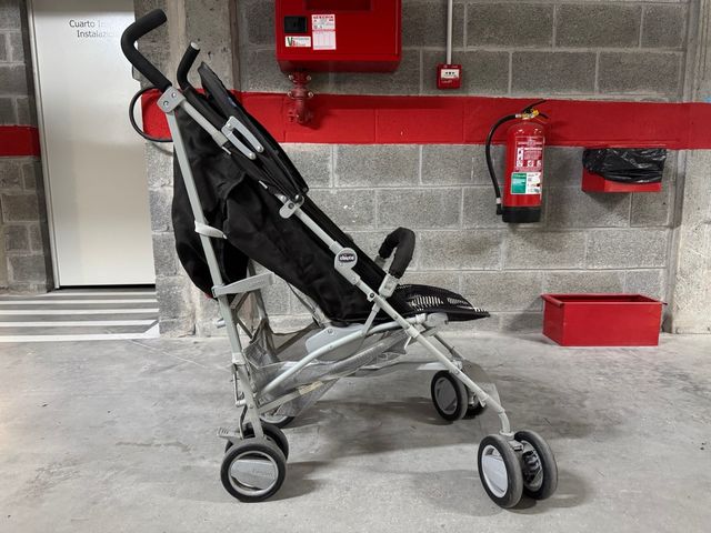 Carrito de paseo Chicco London en color negro, muy manejable y ligero. - Chasis de aluminio. - Asiento acolchado. - Capota. - Cesta de compras.