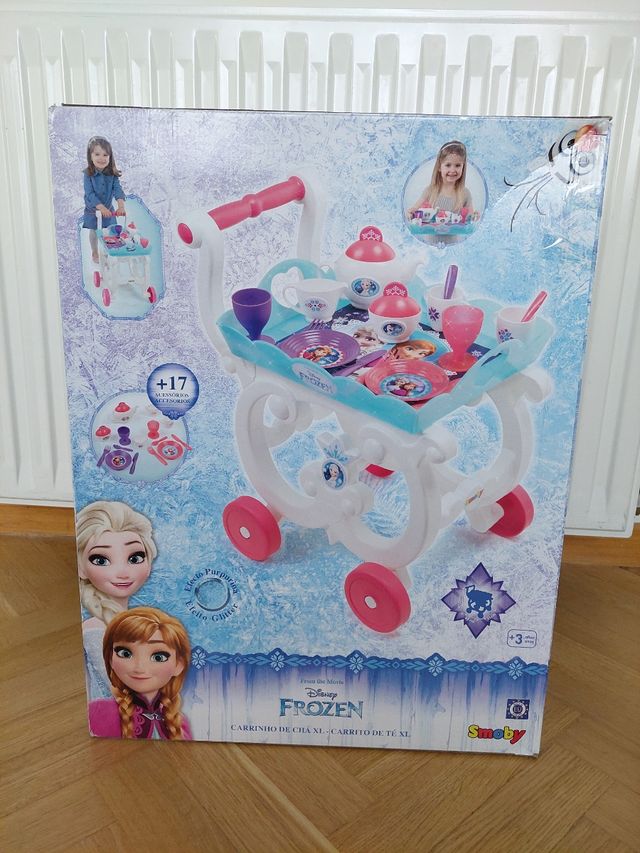 Carrito del té XL Frozen. Tiene todos los complementos y la caja en perfecto estado. Mide 47cm de alto hasta el mango para empujarlo y 43cm de ancho. Ideal para regalar
