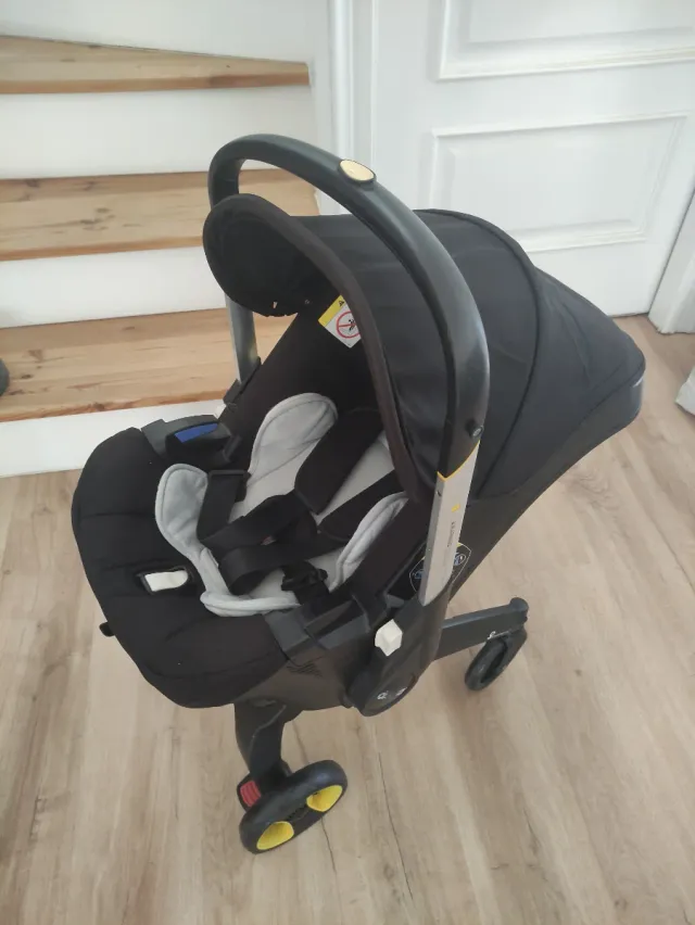 Detalles del productoCarrito Doona en color negro y gris. Es un sistema de viaje 2 en 1 que combina silla de coche y carrito.