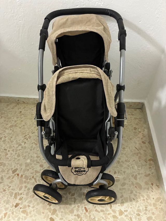 Carrito gemelar de juguete, ideal para juegos de imitación. - Diseño en color beige y negro. - Estructura metálica. - Ruedas giratorias. - plegable completamente