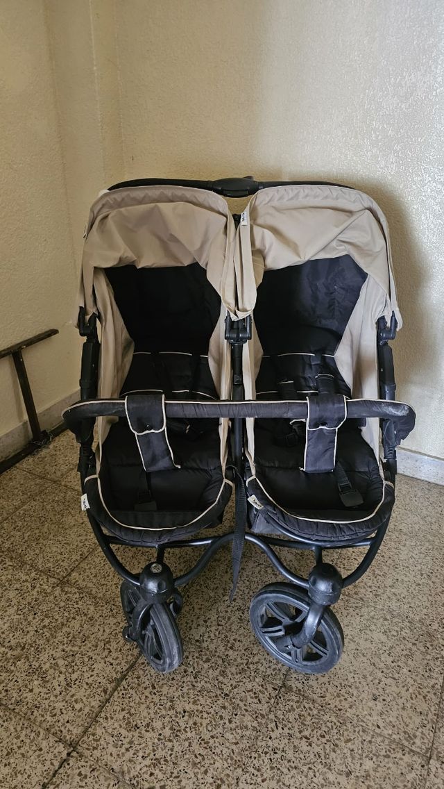 Vendo carrito gemelar en buen estado. Es ligero y fácil de maniobrar. - Ideal para mellizos o gemelos. - Color beige y negro. - Estructura resistente.