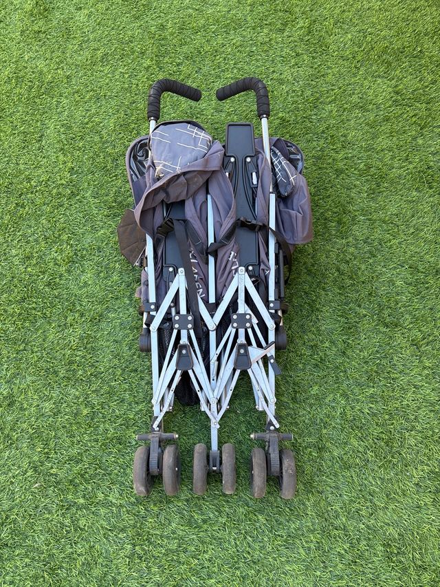 Detalles del productoCarrito gemelar en color gris, fácil de plegar y transportar. Incluye fundas de forros polares para el invierno.